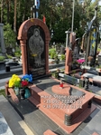 Пам'ятник виготовлено з червоного та чорного граніту.
