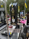 Пам'ятник військовому виконаний в сучасному стилі з чорного граніту.