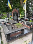 Пам'ятник виготовлено з червоного та чорного граніту.